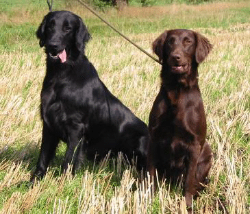 Seit Lucys Einzug in unser Haus hatten wir dann ausgiebig damit zu tun, diesen Eigenschaften gerecht zu werden. Das bedeutete Abschied nehmen von sauberen Fußböden, Hosen, faulen Sofatagen und Menschen, die den Kontakt mir Hunden scheuen. Denn: Ein Retriever lässt sich nicht im Zwinger halten, braucht viel Bewegung und Kontakt zu seinen Menschen, macht vor keiner Matschpfütze und keinem Wasserloch halt und will dauernd etwas im Maul mit sich herumschleppen. Damit diese Eigenschaften die Harmonie im Umgang mit anderen Menschen nicht zu sehr beeinträchtigen, braucht ein Retriever vor allem eines: Eine konsequente Erziehung!Die beiden Flats auf dem Foto, unsere erste Zuchthündin “Quince Omber Grace” sowie Angels Mutter “Funny” sind inzwischen längst im Hundehimmel. Ihre zahlreichen Nachkommen leben weiter und schenken sowohl uns als auch ihren Besitzern jeden Tag aufs Neue viel Freude mit ihrem wunderschönen Erscheinungsbild sowie ihrem freundlichen, unbeschwerten Wesen.